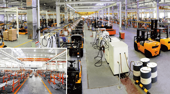 建立了國內獨立的叉車研發及生產基地 擁有3條叉車總裝線、6條部套裝配線、2條油漆涂裝線和焊接機器人